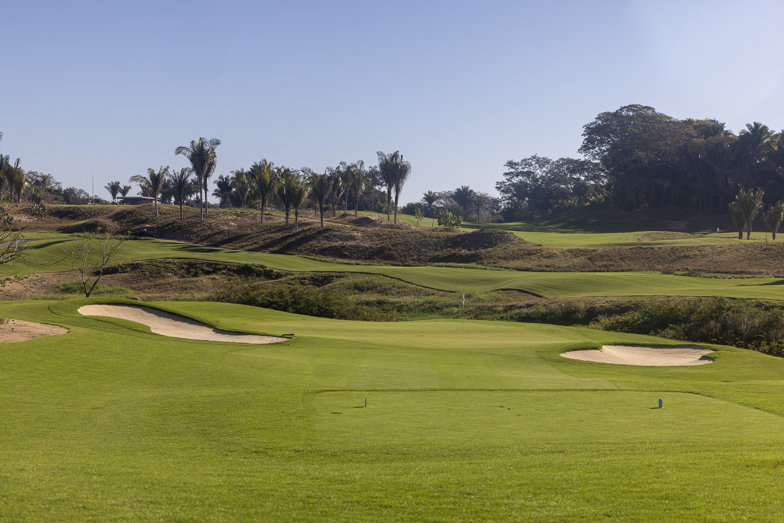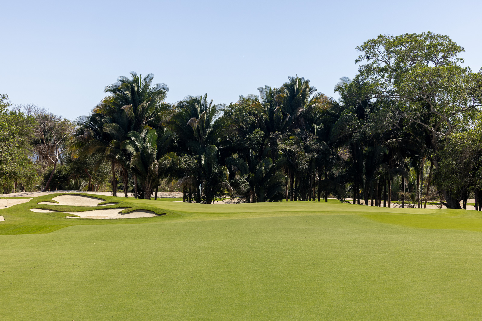 It’s a short par 4 that plays uphill toward a green tucked against a forest of palm trees. The fairway is wide and inviting, but that openness is a little deceptive. The best line is aiming at the right edge of the green; miss it, and you’re either in the right bunker or through the back. What I love about this hole is what it signals. You can feel the landscape shifting around you, the elevation starting to climb, the jungle closing in at the edges. It’s a transition hole in the best sense, a bridge between the opening stretch and what’s about to come.